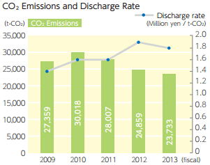 我們更換近800熒光燈和LED燈在中心實(shí)驗(yàn)室在2013財(cái)政年度和分銷中心.由于上述努力,2012-2013財(cái)年看到減少二氧化碳排放量分別占11.7%和15.4%相比2011年的水平.的放電率指標(biāo)(單位產(chǎn)值二氧化碳排放)、環(huán)保目標(biāo)的設(shè)定,沒有進(jìn)步,因?yàn)樵谏a(chǎn)中減少值大于減少能源消耗.