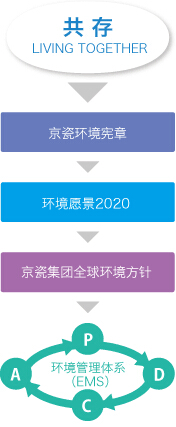 京瓷集團(tuán)在“共存(LIVING TOGETHER)”這一理念的指導(dǎo)下,為構(gòu)建低碳社會、循環(huán)型社會、與自然共存的社會,制定了《京瓷環(huán)境憲章》,其中規(guī)定了環(huán)保產(chǎn)品開發(fā)、節(jié)能、防止全球變暖、節(jié)約資源、削減廢棄物、化學(xué)物質(zhì)的合理管理、保護(hù)生物多樣性等綜合性的環(huán)保措施.