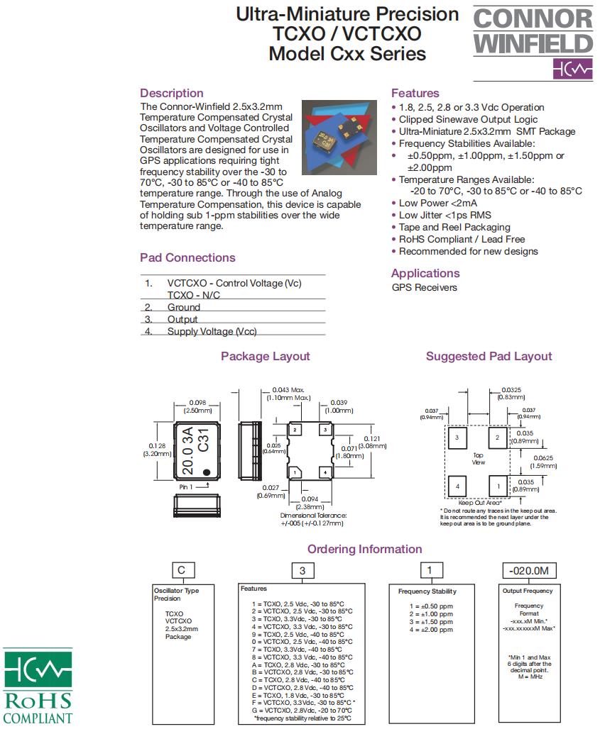 C31-020.0M|TCXO進口溫補晶振|6G基站晶振,ConnorWinfield晶振,C3X有源晶振,C31-020.0M晶振,TCXO進口溫補晶振,3225mm晶振,石英貼片晶振,頻率20MHz,電壓3.3V,工作溫度-30~85°C,頻率穩(wěn)定性0.5ppm,低功耗晶振,低抖動晶振,6G基站晶振,GOS接收器晶振,衛(wèi)星導(dǎo)航系統(tǒng)晶振,智能交通控制器晶振.