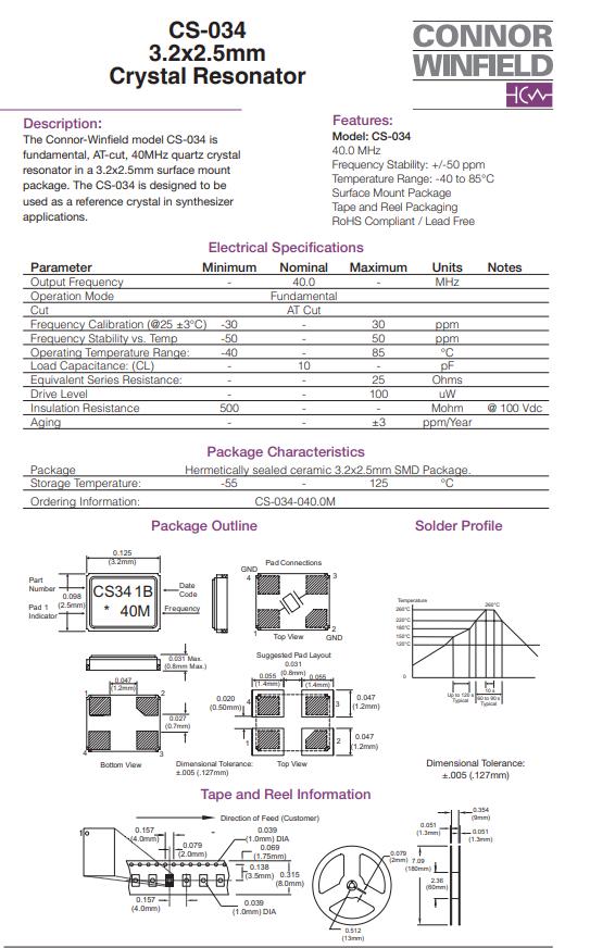 | CS-034-040.0M | Connor-Winfield | CS-034 | 40MHz | ±50ppm | ±30ppm | 10pF | 25 Ohm | -40°C ~ 85°C |