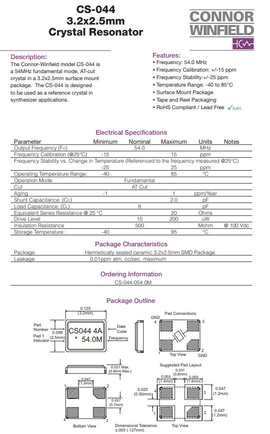CS-044-054.0M,6G無線網(wǎng)絡(luò)晶振,ConnorWinfield進口晶體參數(shù)表