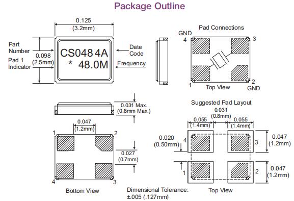 CS-048-048.0M,6G光纖通道晶振,歐美進口晶振 尺寸圖