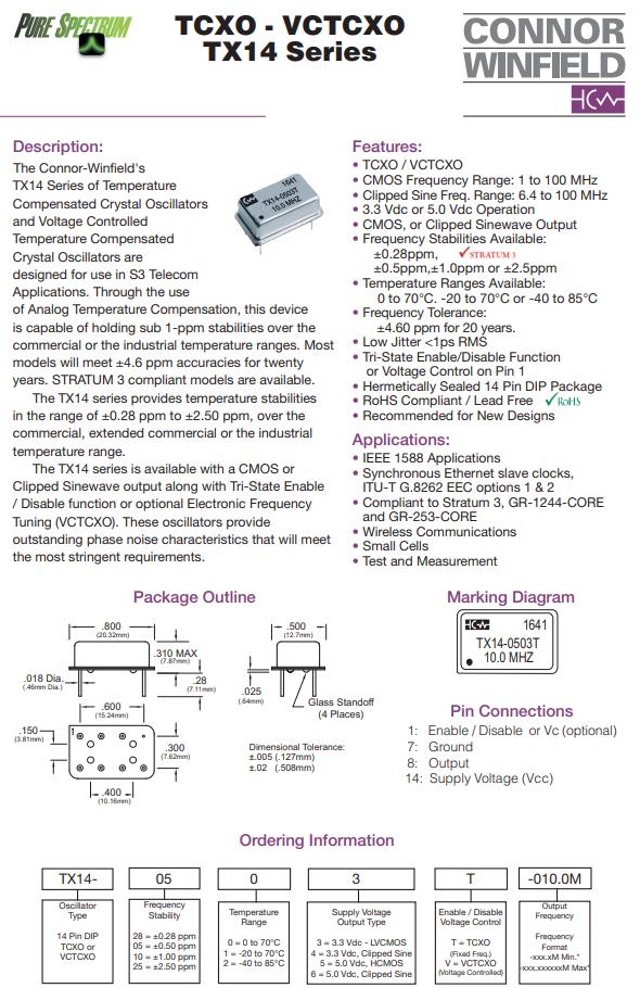 TX14-0523T-032.0M,TCXO長(zhǎng)方形鐘振,6G無(wú)線通信晶振,Connor-Winfield晶振,TX14有源晶振,TX14-0523T-032.0M晶振,TCXO長(zhǎng)方形鐘振,石英晶體振蕩器,頻率32MHz,電壓3.3V,工作溫度-40~85°C,頻率穩(wěn)定性0.5ppm,低相噪晶振,高頻率穩(wěn)定性晶振,6G無(wú)線通信晶振,IEEE 1588應(yīng)用晶振,顯卡晶振,測(cè)試與測(cè)量設(shè)備晶振,以太網(wǎng)時(shí)鐘晶振.