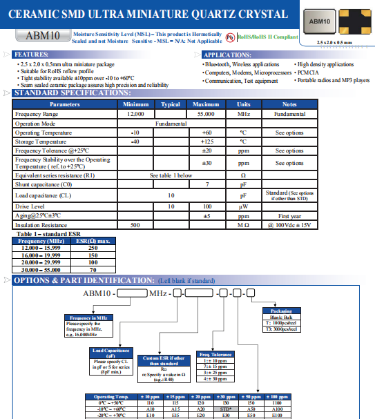 | ABRACON晶振 | 單位 | ABM10晶振 | 石英晶振基本條件 |