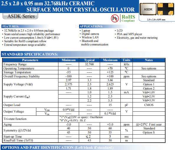 ABRACON晶振,ASDK2-32.768KHZ-LR-T3晶振,ASDK晶振,高質(zhì)量振蕩器.智能手機(jī)晶振,產(chǎn)品具有高精度超小型的表面貼片型石英晶體振蕩器,最適用于移動通信終端的基準(zhǔn)時鐘等移動通信領(lǐng)域.比如智能手機(jī),無線通信,衛(wèi)星導(dǎo)航,平臺基站等較高端的數(shù)碼產(chǎn)品,晶振本身小型,薄型具備各類移動通信的基準(zhǔn)時鐘源用頻率,貼片晶振具有優(yōu)良的電氣特性,耐環(huán)境性能適用于移動通信領(lǐng)域,滿足無鉛焊接的高溫回流溫度曲線要求.