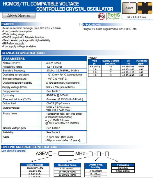 ABRACON晶振,ASEV晶振,壓控晶體振蕩器.高精度超小型的表面貼片型石英晶體振蕩器,最適用于移動(dòng)通信終端的基準(zhǔn)時(shí)鐘等移動(dòng)通信領(lǐng)域.比如智能手機(jī),無(wú)線(xiàn)通信,衛(wèi)星導(dǎo)航,平臺(tái)基站等較高端的數(shù)碼產(chǎn)品,晶振本身小型,薄型具備各類(lèi)移動(dòng)通信的基準(zhǔn)時(shí)鐘源用頻率,貼片晶振具有優(yōu)良的電氣特性,耐環(huán)境性能適用于移動(dòng)通信領(lǐng)域,滿(mǎn)足無(wú)鉛焊接的高溫回流溫度曲線(xiàn)要求.