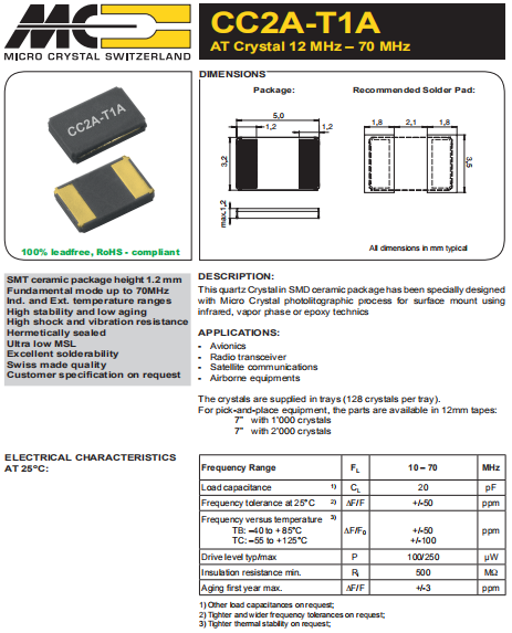 | Microcrystal晶振 | 單位 | CC2A-T1A晶振 | 石英晶振基本條件 |