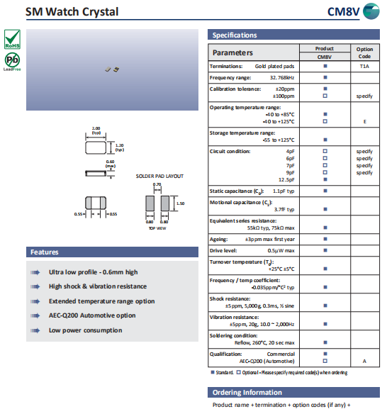 | Golledge晶振 | 單位 | CM8V晶振 | 石英晶振基本條件 |
