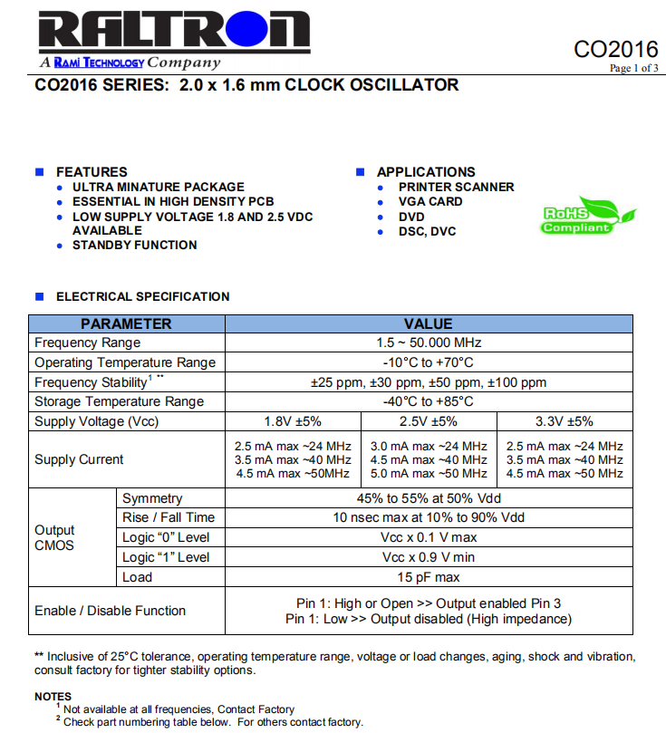 Raltron晶振,CO2016晶振,石英晶體振蕩器.有源晶振只是晶體本身起振需要外部電壓供應(yīng),起振后可直接驅(qū)動CMOS集成電路,產(chǎn)品本身已實現(xiàn)與薄型IC(TSSOP封裝,TVSOP封裝)同樣的1mm厚度,斷開時的消費電流是15µA以下,編帶包裝方式可對應(yīng)自動搭載及IR回流焊接(無鉛對應(yīng))產(chǎn)品有幾種電壓供選1.8V,2.5V,3V3.3V,5V,以應(yīng)對不同IC產(chǎn)品需要.