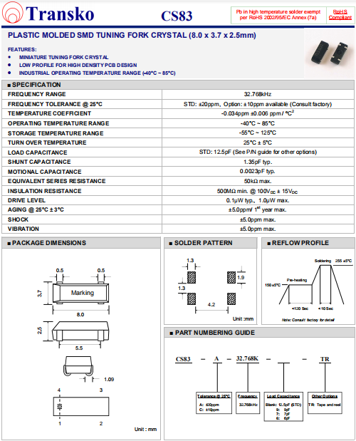 | Transko晶振 | 單位 | CS83晶振 | 石英晶振基本條件 |