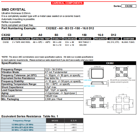 | Cardinal晶振 | 單位 | CX252晶振 | 石英晶振基本條件 |