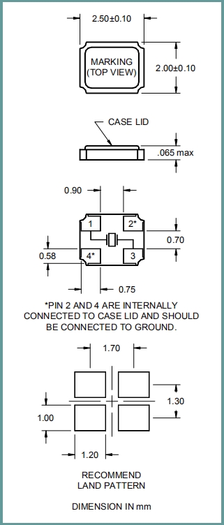 | 頻率溫度特征 | f_tem | ±50× 10-6 /-30°C~+85°C | 超出標準的規(guī)格請聯(lián)系我們. |