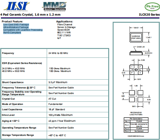 ILSI晶振,ILCX20晶振,高性能石英晶體.小型表面貼片晶振型,是標(biāo)準(zhǔn)的石英晶體諧振器,適用于寬溫范圍的電子數(shù)碼產(chǎn)品,家電電器及MP3,MP4,播放器,單片機(jī)等領(lǐng)域.可對(duì)應(yīng)24.000MHz以上的頻率,在電子數(shù)碼產(chǎn)品,以及家電相關(guān)電器領(lǐng)域里面發(fā)揮優(yōu)良的電氣特性,滿足無鉛焊接的回流溫度曲線要求.