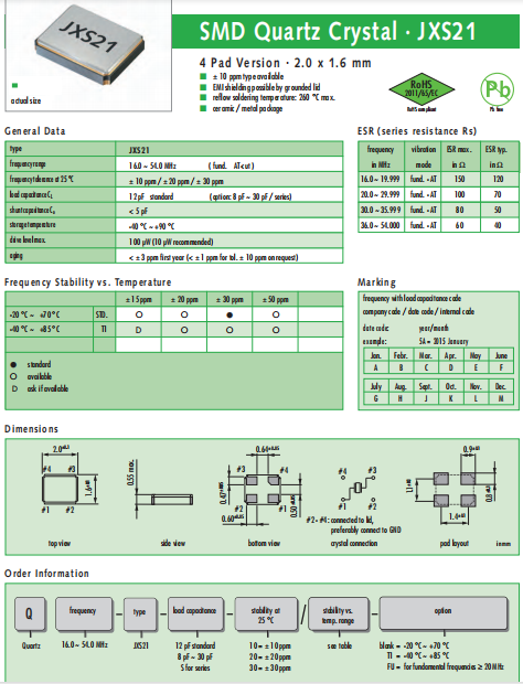 JAUCH晶振,JXS21晶振,無源石英晶體.普通貼片石英晶振外觀使用金屬材料封裝的,具有高穩(wěn)定性,高可靠性的石英晶體諧振器,晶振外觀本身使用金屬封裝,充分的密封性能,可確保其高可靠性,采用編帶包裝,外包裝采用朔膠盤,可在自動貼片機上對應自動貼裝等優(yōu)勢.