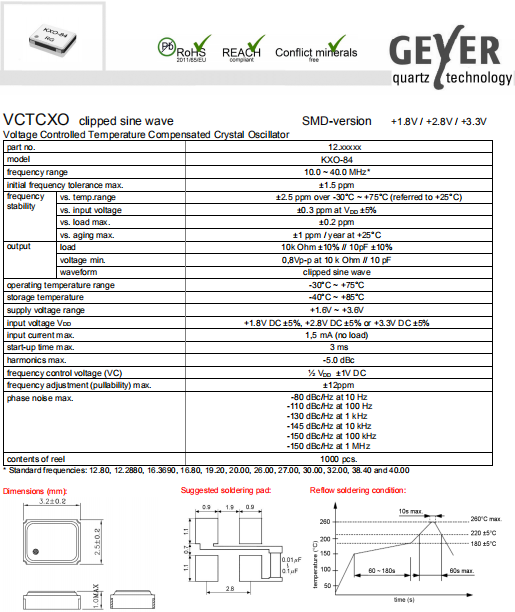 Geyer晶振,KXO-84晶振,壓控溫補晶振.有源晶振,是只晶體本身起振需要外部電壓供應,起振后可直接驅(qū)動CMOS 集成電路,產(chǎn)品本身已實現(xiàn)與薄型IC(TSSOP封裝,TVSOP封裝)同樣的1mm厚度,斷開時的消費電流是15 µA以下,編帶包裝方式可對應自動搭載及IR回流焊接(無鉛對應)產(chǎn)品有幾種電壓供選1.8V,2.5V,3V3.3V,5V,以應對不同IC產(chǎn)品需要.