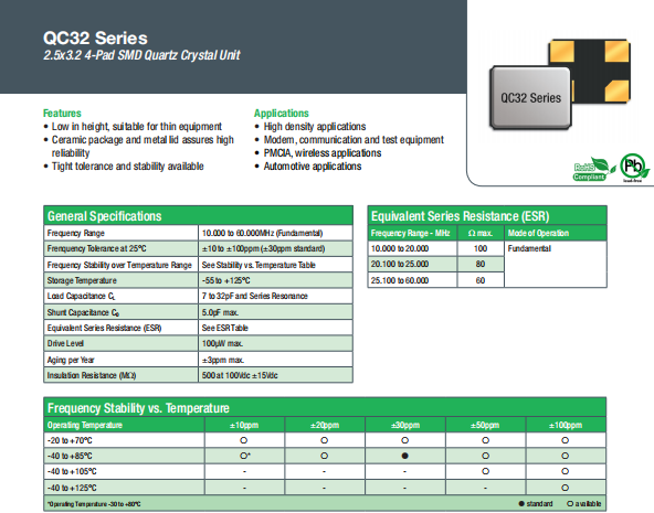 | Qantek晶振 | 單位 | QC32晶振 | 石英晶振基本條件 |