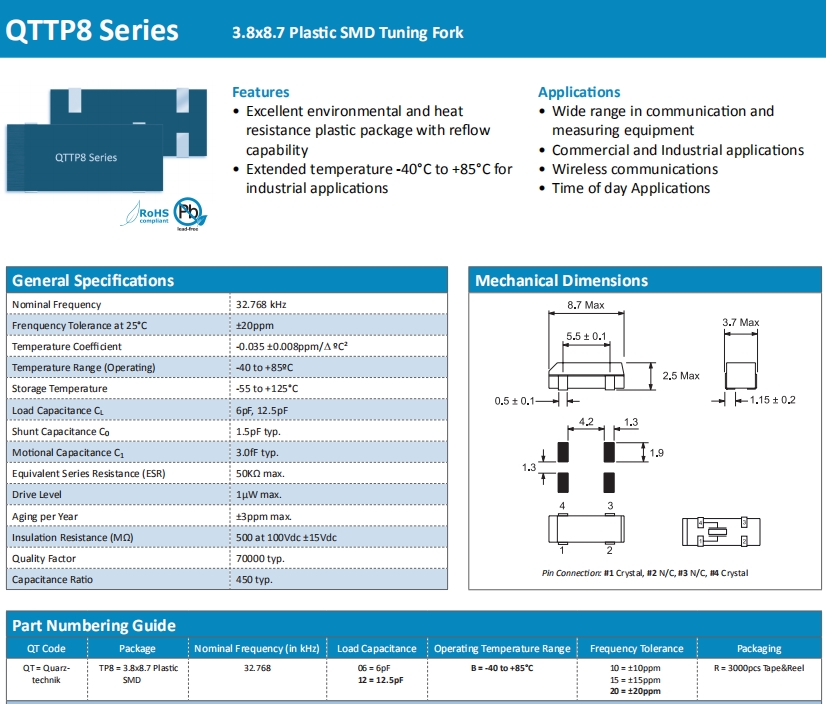 | Quarztechnik晶振 | 單位 | QTTP8晶振 | 石英晶振基本條件 |