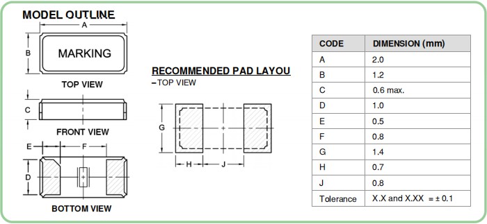 | 負(fù)載電容 | C | 6.0pF,9.0pF,12.5pF | 不同負(fù)載要求,請聯(lián)系我們. |