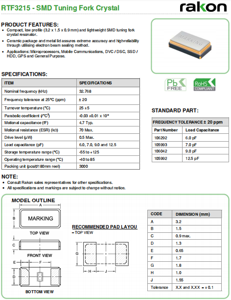 | Rakon晶振 | 單位 | RTF3215晶振 | 石英晶振基本條件 |