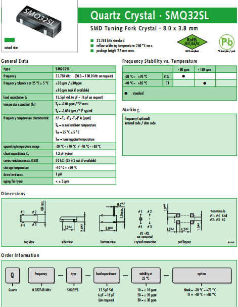 JAUCH晶振,SMQ32SL晶振,壓電石英晶體.超小型,薄型,質地輕的表面貼片音叉型晶體諧振器,手機晶體,產品體積小,特別適用于各種小巧的便攜式消費電子數碼產品,在移動通信領域得到了廣泛的應用,晶振產品本身可發(fā)揮優(yōu)良的電氣特性,滿足無鉛焊接的高溫回流溫度曲線要求.