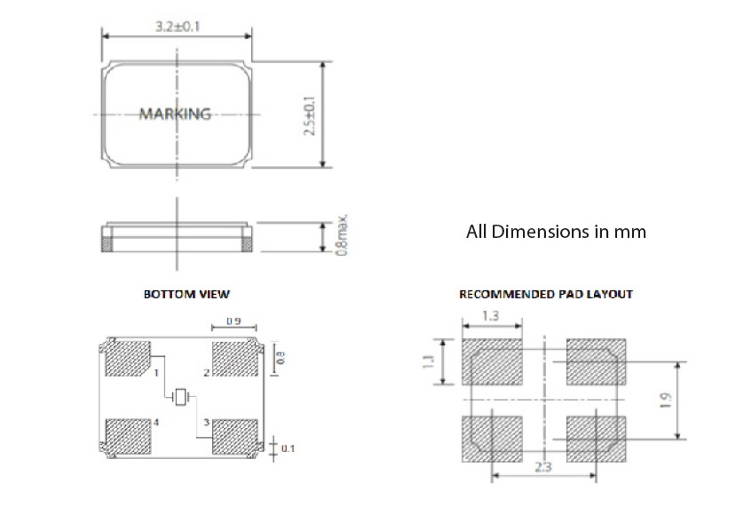 | 頻率溫度特征 | f_tem | ±50× 10-6 /-30°C~+85°C | 超出標準的規(guī)格請聯(lián)系我們. |