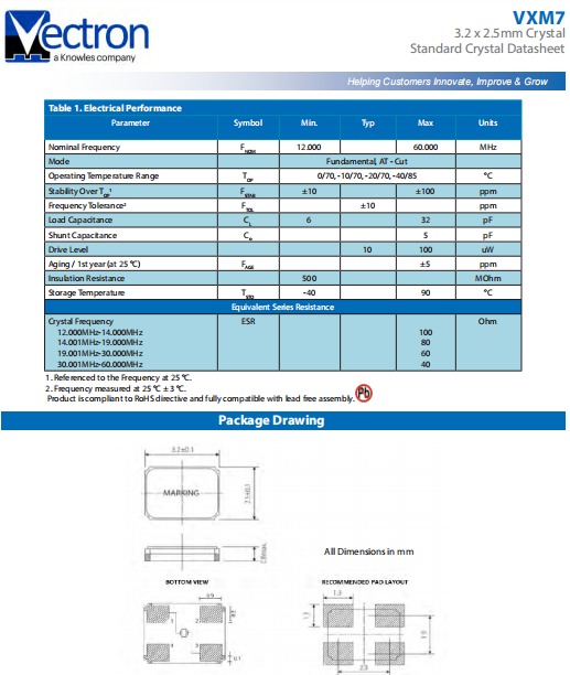 | VECTRON晶振 | 單位 | VXM7晶振 | 石英晶振基本條件 |