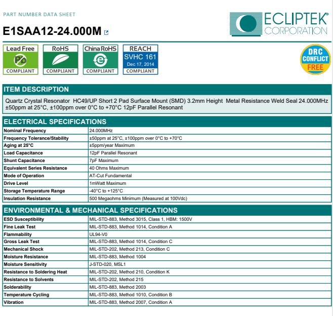 Ecliptek晶振將確保其振蕩器和石英晶體諧振器產(chǎn)品及相關(guān)設(shè)施滿足甚至超出國家的以及地方環(huán)保機(jī)構(gòu)的相關(guān)法規(guī)規(guī)定及其他要求,同時該公司盡可能的參與并協(xié)助政府機(jī)關(guān)和其他官方組織從事的環(huán)保活動. 在地方對各項設(shè)施的管理責(zé)任中,確保滿足方針的目標(biāo)指標(biāo),同時在各種經(jīng)營與生產(chǎn)活動中完全遵守并符合現(xiàn)行所有標(biāo)準(zhǔn)規(guī)范的要求.ECLIPTEK晶振,E1S石英晶體諧振器,E1SAA12-24.000M晶振.