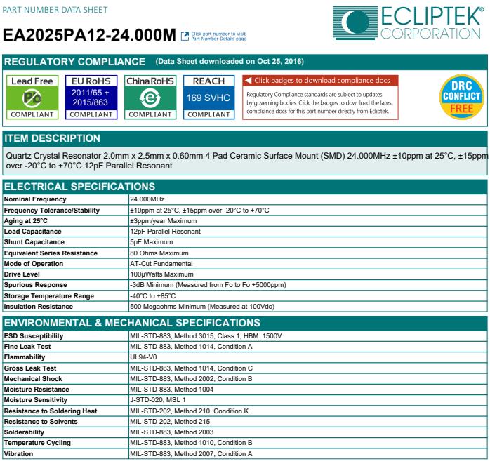 日蝕高品質晶振,EA2025PA12-24.000M晶振,無源四腳晶振,ECLIPTEK已經實施了中國對危險物質(RoHS)的限制措施,以回應國際社會對鉛(鉛)和其他有害物質在電子部件和組件制造中所使用的有害物質的擔憂。ECLIPTEK公司致力于保護環(huán)境,作為負責任的企業(yè)公民。ECLIPTEK晶振一直在努力解決電子行業(yè)的RoHS和無pb合規(guī)問題。我們的目標是逐步消除不兼容產品的使用,為我們的客戶提供符合要求的替代貼片石英晶振產品,以及發(fā)布的生命周期的結束,從而提供足夠的時間來批準兼容的產品。