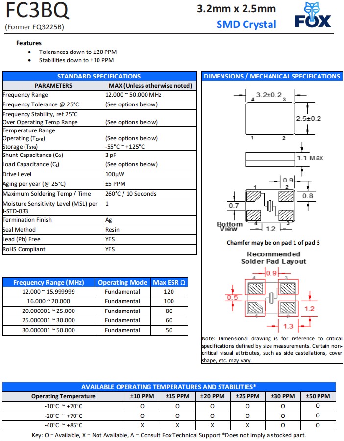 | FC3BQBBMM12.0-T1 | Fox晶振 | FC3BQ | 12 MHz | ±50ppm |