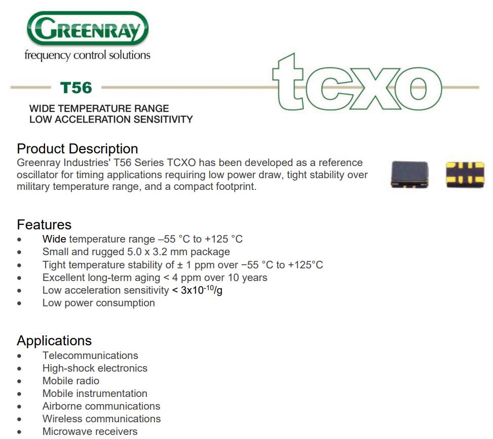 T56-J57-C-LG-32.0MHz-E,耐高溫晶振,6G模塊晶振,Greenray晶振,歐美進(jìn)口晶振,T56有源晶振,T56-J57-C-LG-32.0MHz-E晶振,5032mm晶振,SMD晶振,頻率32MHz,電壓3.3V,工作溫度-45~105°C,耐高溫晶振,低老化晶振,6G模塊晶振,機(jī)載通信晶振,微波接收器晶振,移動(dòng)儀器儀表晶振.