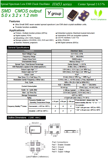 MERCURY晶振,Oscillator,HM53Y振蕩器.貼片有源石英晶振是指在普通無源晶體上增加了電壓,內(nèi)部集成了相應(yīng)IC與電容電阻,需要在凈化萬級車間生產(chǎn),并且在密封機(jī)器設(shè)備中焊接加蓋,內(nèi)部封裝模式是指在真空封裝區(qū)域內(nèi)進(jìn)行封裝.1.防止外界氣體進(jìn)入組件體內(nèi)受到污染和增加應(yīng)力的產(chǎn)生;2.使組件在真空下電阻減小;3.氣密性高.此技術(shù)為研發(fā)及生產(chǎn)超小型,超薄型石英晶體元器必須攻克的關(guān)鍵技術(shù)之一.