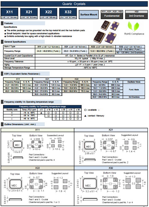 | MERCURY晶振 | 單位 | X21晶振 | 石英晶振基本條件 |