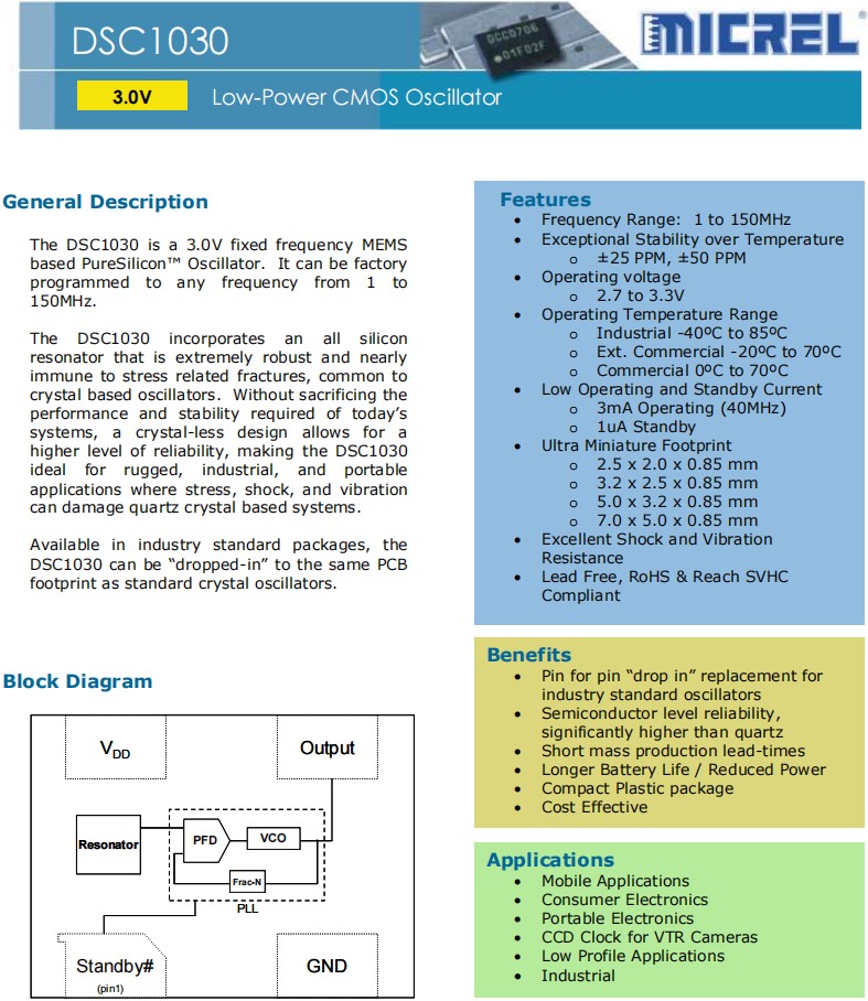 | DSC1030BC1-016.0000T | Microchip晶振 | DSC1030 | 16MHz | 3V |