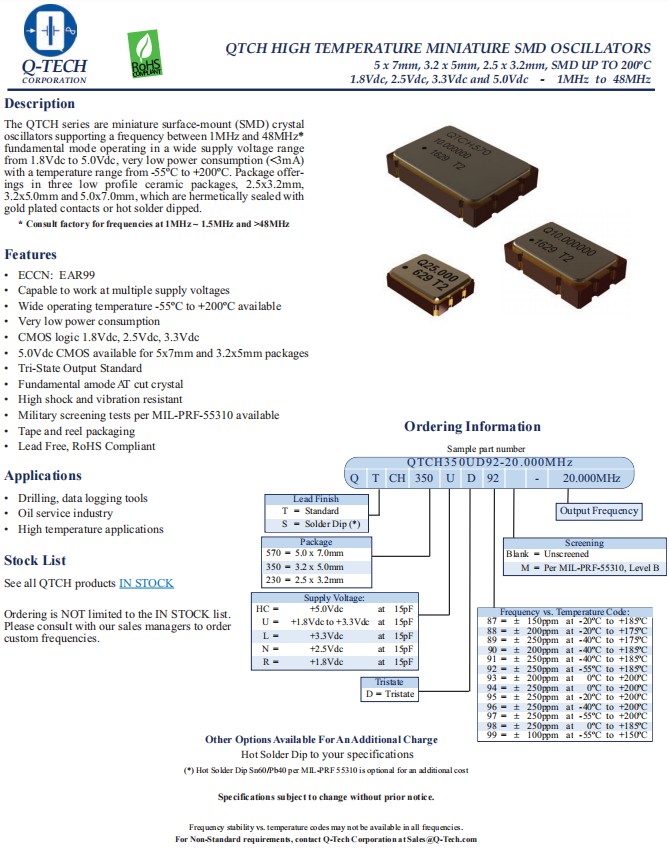 QTCH230LD92-32.000MHz|3225mm高溫應(yīng)用晶振|Q-Tech美國(guó)晶振 參數(shù)表