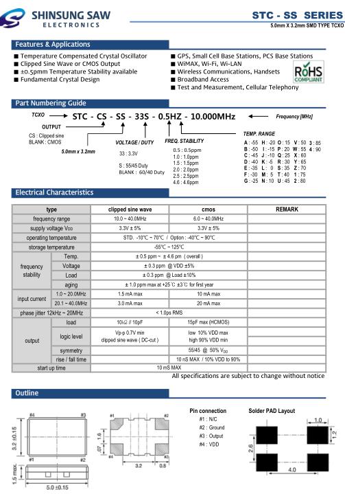 SHINSUNG晶振,STC-SS貼片晶體,STC-CS-SS-33S-0.5HZ-20.000MHz溫補振蕩器,5032mm體積的石英晶體振蕩器,有源晶振,該產(chǎn)品可驅(qū)動2.5V的溫補晶振,壓控晶振,VC-TCXO晶體振蕩器產(chǎn)品,電源電壓的低電耗型,編帶包裝方式,可對應自動高速貼片機自動焊接,及IR回流焊接(無鉛對應),為無鉛產(chǎn)品,超小型,質(zhì)地輕.產(chǎn)品被廣泛應用到集成電路,程控交換系統(tǒng),無線發(fā)射基站.