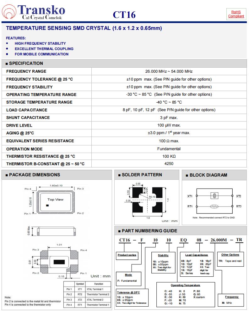Transko晶振,CT16-F1010EQ12-32.000M-TR,6G移動(dòng)通信晶振參數(shù)表