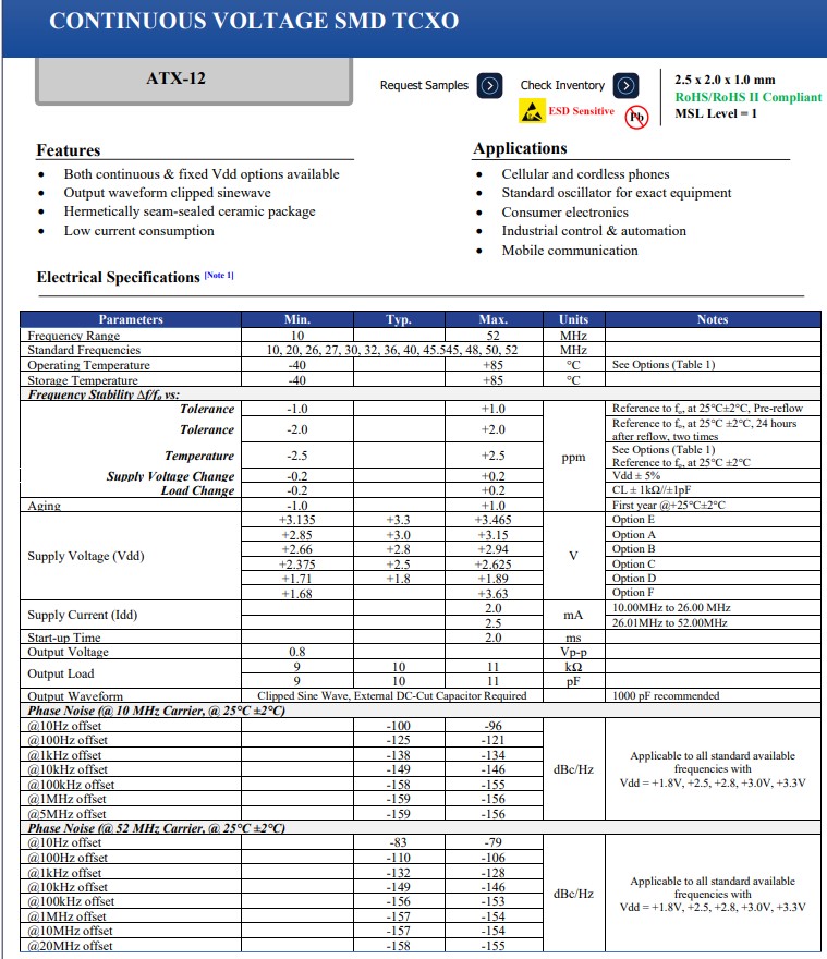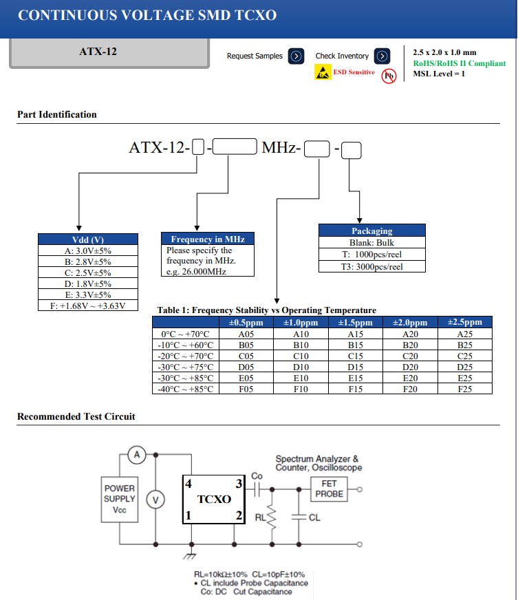 TCXO振蕩器ATX-12C-26.000MHz-F05-T3適合低功耗6G路由器應(yīng)用