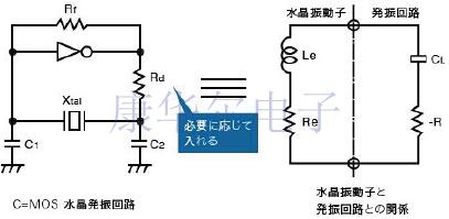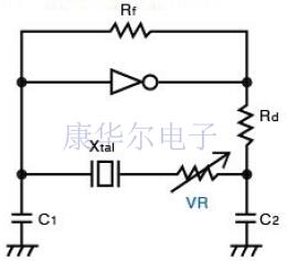 為了確認(rèn)振蕩電路的振蕩余量是否足夠,需要知道振蕩電路的負(fù)電阻(-R).插入與晶振單元串聯(lián)的可變電阻器(VR),并從振蕩停止?fàn)顟B(tài)更改到振蕩開(kāi)始為止的值.振蕩開(kāi)始時(shí)的VR值變?yōu)樨?fù)電阻值(-R).為了獲得足夠的振蕩電路的振蕩余量,請(qǐng)調(diào)整C1,C2和Rd,以使負(fù)電阻值至少為石英晶體振蕩器單元有效電阻值的5倍.此外,當(dāng)用于車載等高度可靠的設(shè)備時(shí),建議使用10次以上.