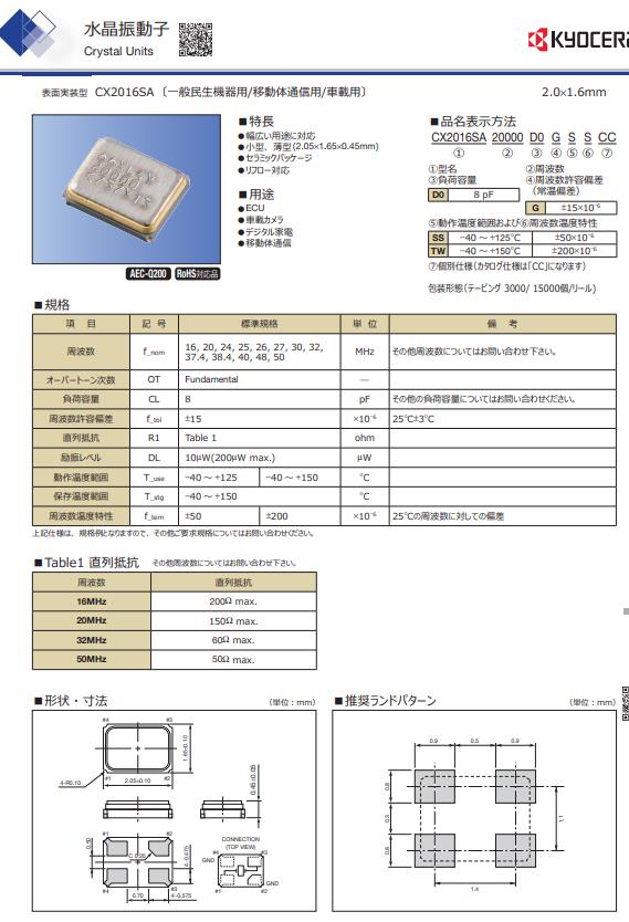 更多>>京瓷輕薄型的貼片晶振可滿足車(chē)載相機(jī)的需求CX2016SA20000D0GSSCC