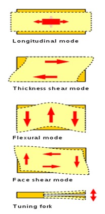晶振與幾乎所有的彈性物質(zhì)都具有自然共振頻率,透過適當(dāng)?shù)膫鞲衅骺杉右岳谩@玟撹F具有良好彈性、音速快,在石英晶振大量應(yīng)用以前,鋼鐵被用作機械式濾波器(Mechanical filter)。 共振頻率取決於晶振的尺寸、形狀、彈性、與物質(zhì)內(nèi)的音速。 高頻用的晶振通常是切成簡單的形狀,如方形片狀。 典型的低頻用晶振則常切成音叉形,例如手錶用的那種。 如不需要太高的精確度,則也可以使用陶瓷晶振(Ceramic Resonator)取代石英晶振。