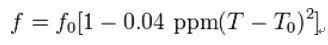石英晶體的頻率特性取決於形狀或切割方式。音叉型晶體通常會切割成溫度特性是以25℃為中心的拋物線。這意味著,音叉晶體振盪器在室溫下產(chǎn)生的共振頻率接近其目標(biāo)頻率,當(dāng)溫度或增加或減少時頻率都會降低。頻率-溫度曲線為拋物線的常見32.768千赫音叉晶體的溫度係數(shù)是 負百萬分之0.04/℃²。