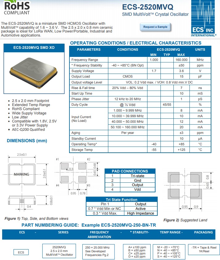 更多>>ECS-2520MVQ-1250-BS-TR多電壓晶振非常適合汽車和物聯(lián)網應用