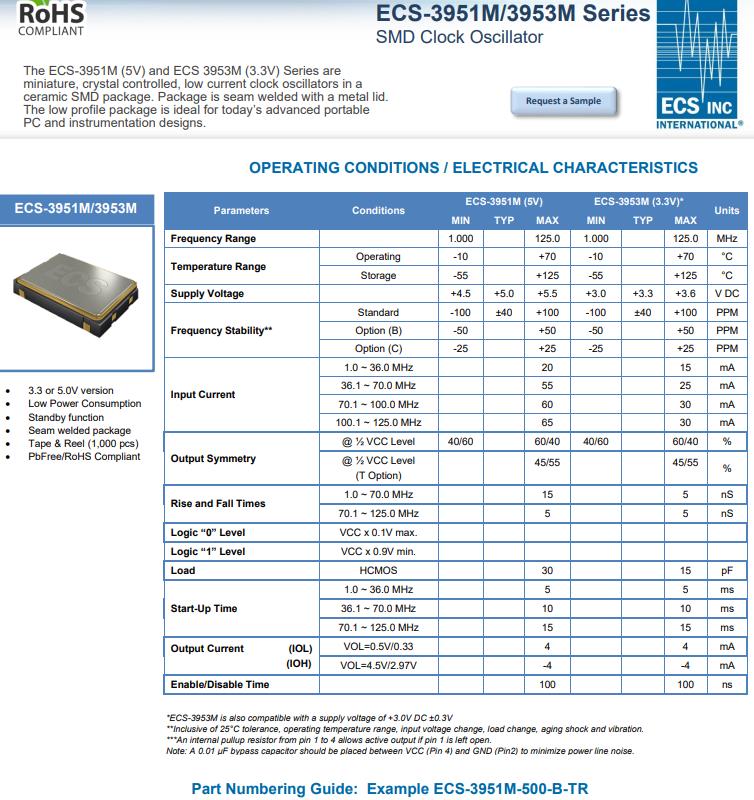 | ECS-3953M-500-BN-TR | ECS晶振 | ECS-3953M-BN | 50MHz | -40°C ~ 85°C |