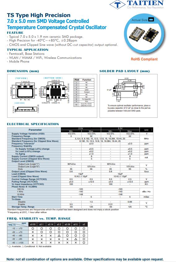 | TSETTCSANF-20.000000 | Taitien | TS | TCXO | 20MHz | 2.8 V ~ 3.3 V |