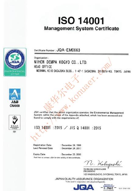 此文關(guān)鍵字: NDK環(huán)保晶體NDK晶振ISO14001證書(shū)