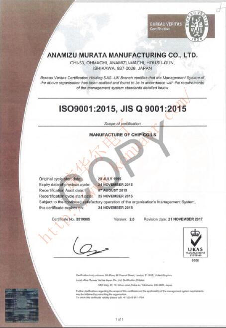 更多>>XRCGB24M576FAN00R0村田石英晶體ISO9001品質(zhì)認(rèn)證證書