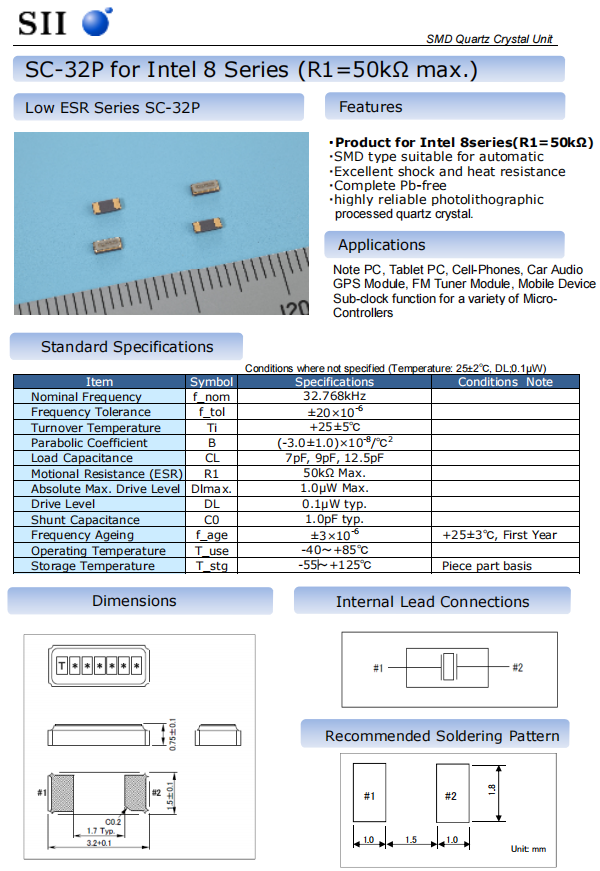隨著SC-32P系列的出現(xiàn),日本SEIKO晶振提供的32.768KHz石英晶體的最大電阻降低,3.2×1.5mm外殼的電阻為50k?,標(biāo)準(zhǔn)情況下,常用的3.2×1.5毫米32.768KHz石英晶體的最大電阻為70k?,SC-32P系列可以提供7pf,9pf,12.5pf的負(fù)載電容。開發(fā)者可以在25°C時在10ppm(可選)和20ppm(標(biāo)準(zhǔn))的頻率容差之間進(jìn)行選擇。通常,石英晶體可以在所有版本的現(xiàn)貨中獲得(以先前銷售為準(zhǔn))。4到6周的更換時間非常短。