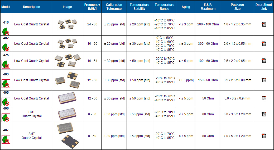 | 頻率公差25℃ | ±20 ppm, ±30 ppm, ±50 ppm | |