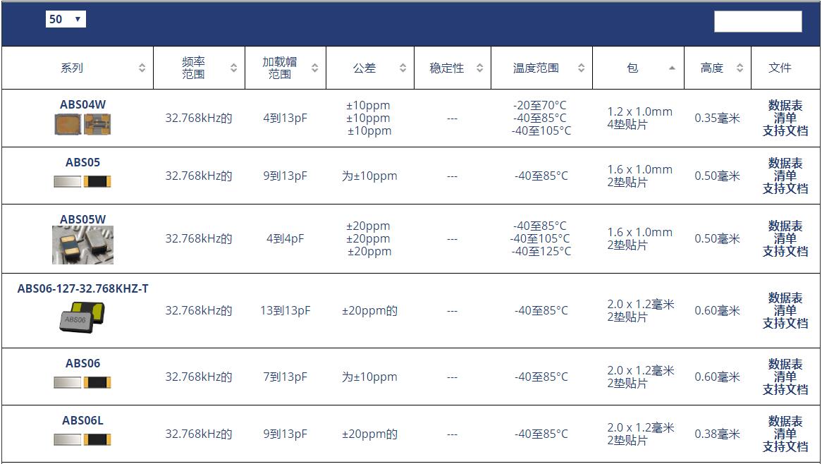 32.768K晶振系列原廠代碼表: