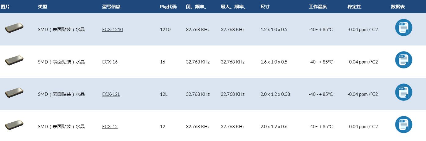 ECS貼片KHZ晶振系列原廠代碼表: